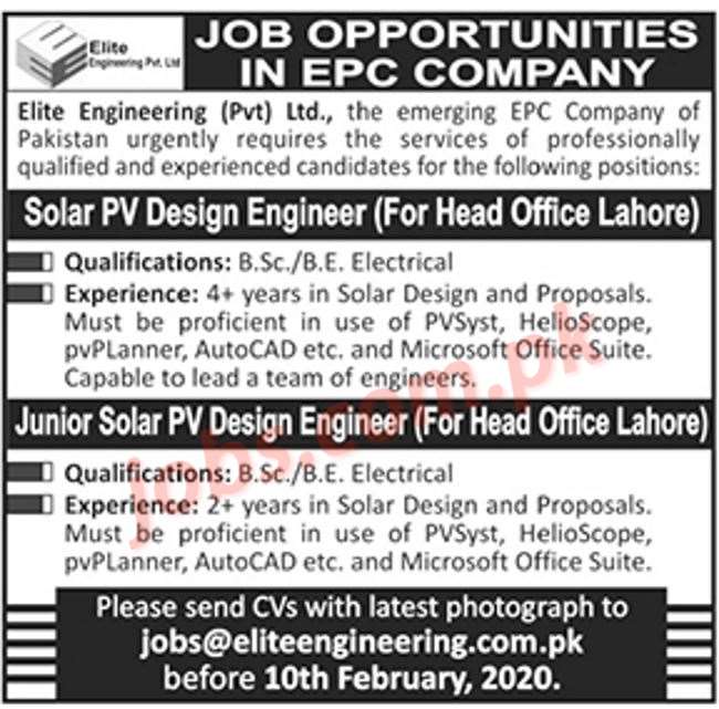 Elite Engineering (Pvt) Ltd Jobs 2020 for Solar PV Design Engineers