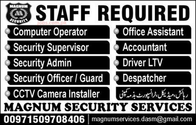 Magnum Security Services Jobs 2020 for Security Supervisor, Security Officers, CCTV, Office & Other