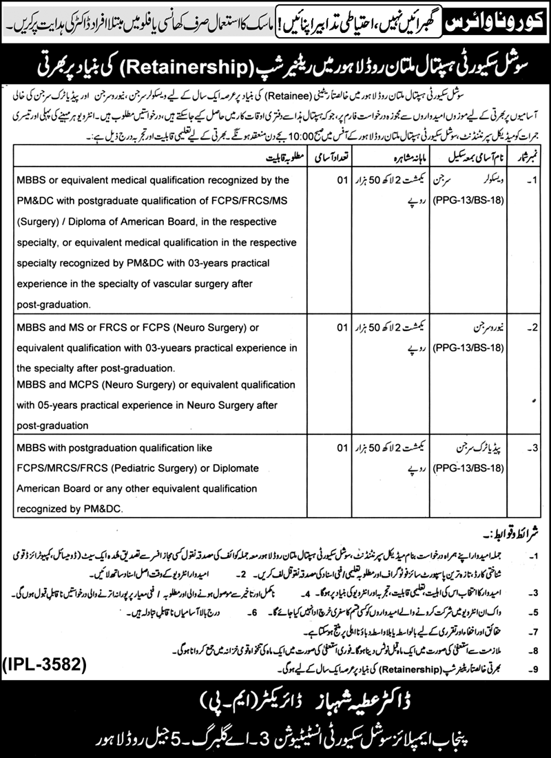 Social Security Hospital Multan Jobs 2020 for Surgeons / Specialists