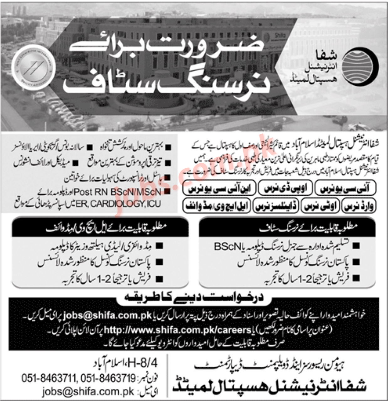Shifa International Hospital Islamabad Jobs 2020 for Nurses, LHVs and Midwives