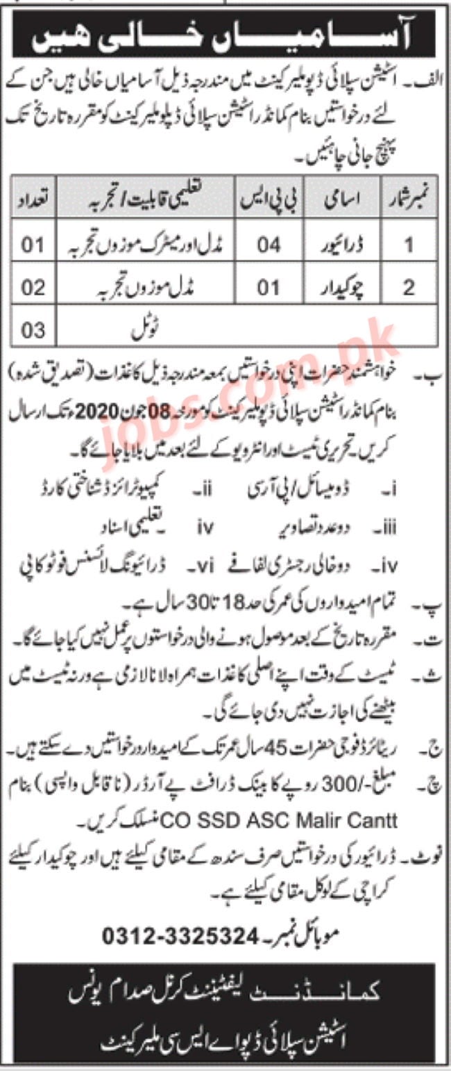 Pak Army Jobs 2020 for Driver and Guards at Station Supply Depot Malir Cantt