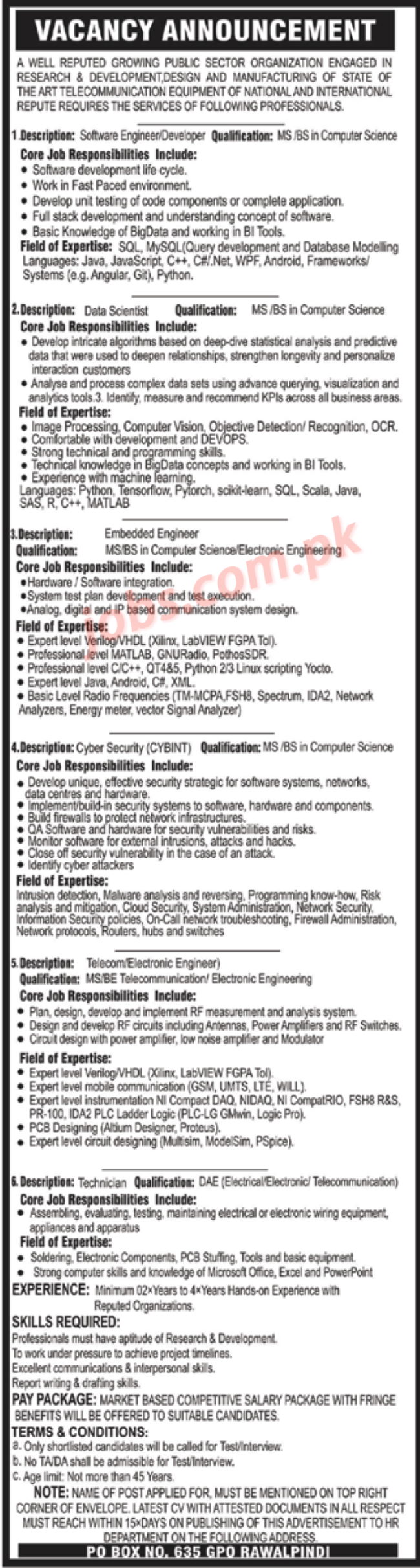 PO Box 365 Rawalpindi Jobs 2020 for Software Engineer Developer, Data Scientist, Embedded Engineer, Cyber Security