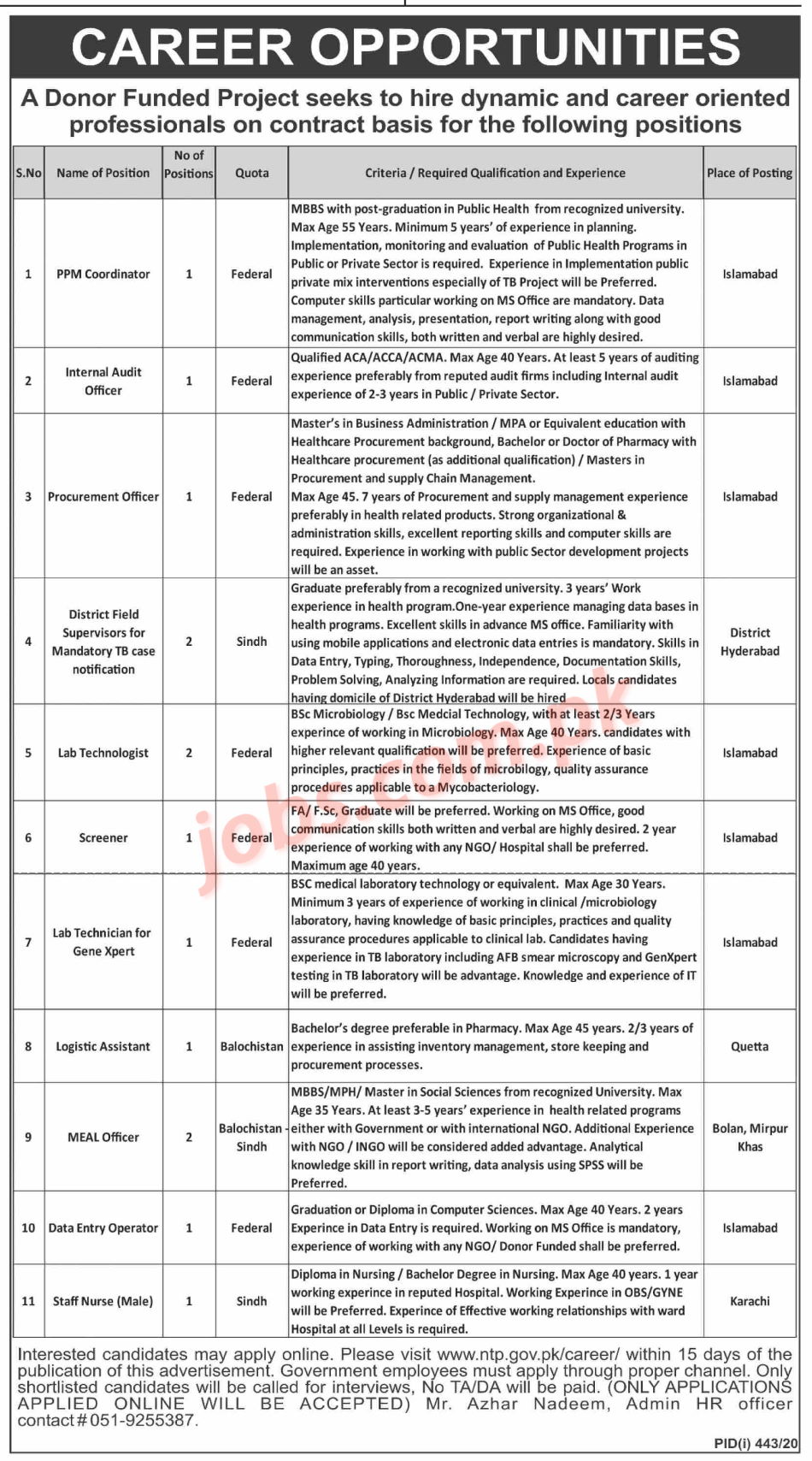 NTP Islamabad Jobs 2020 for 14+ PPM Coordinator, Audit Officer, Lab Technologist, Assistant and Other