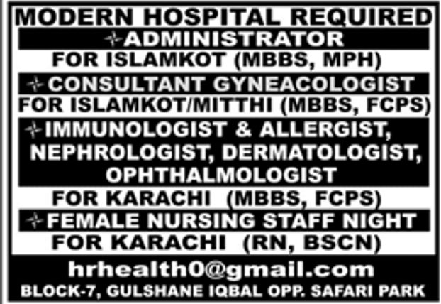 Modern Hospital Sindh Jobs 2022 for Nursing, Medical, Admin & Other Staff