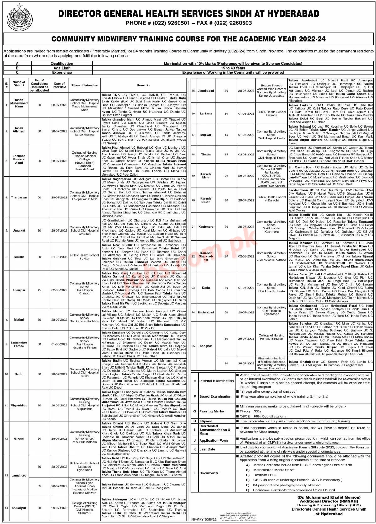 Sindh Health Department Community Midwifery Training 2022/23