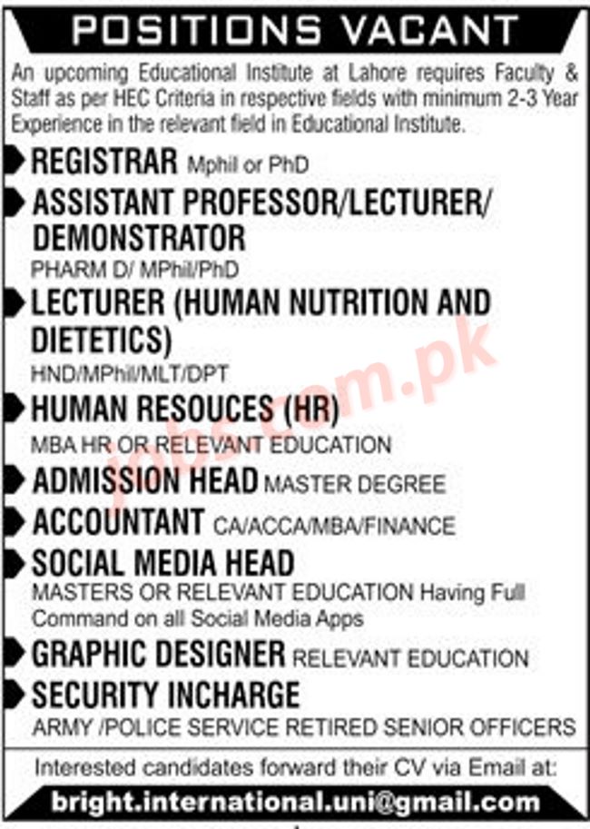 Lahore Educational Institute Jobs 2022 for Teaching Faculty and Non-Teaching Staff