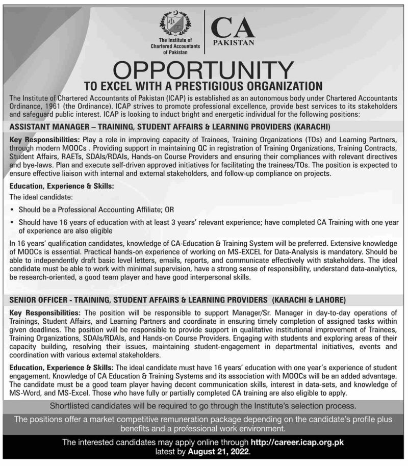 ICAP Pakistan Jobs 2022 for Assistant Manager and Senior Training Officer Posts