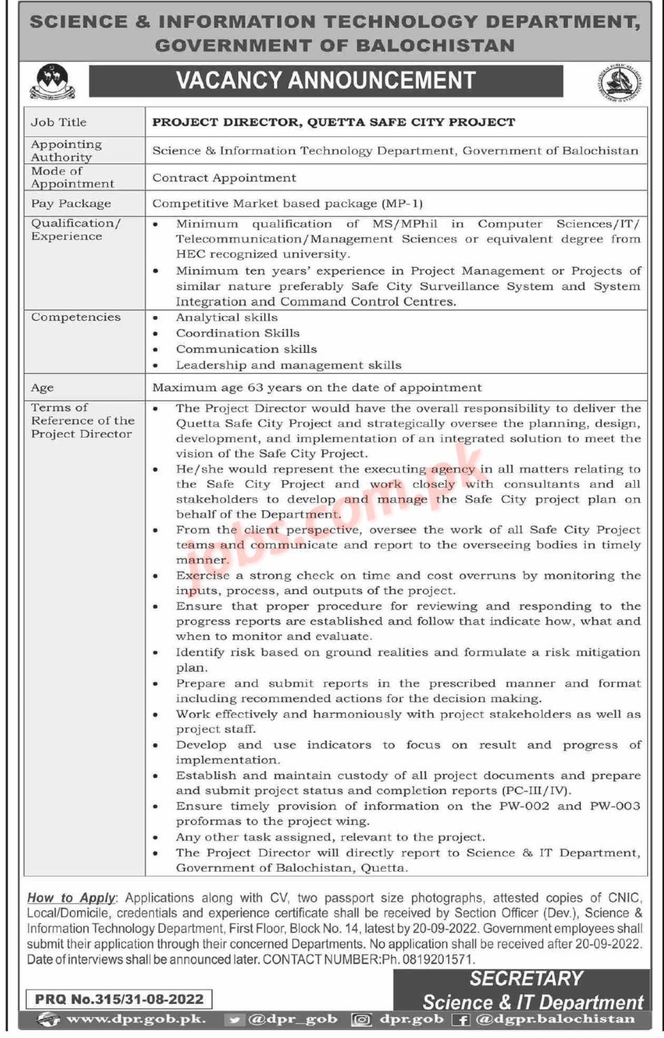 Balochistan Science & IT Department Jobs 2022 for Project Director