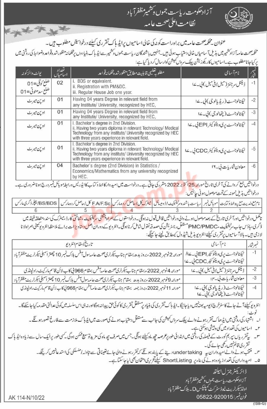 Health Department AJK Jobs 2022 for Medical Technologists, Specialists and Statisticians Vacancies