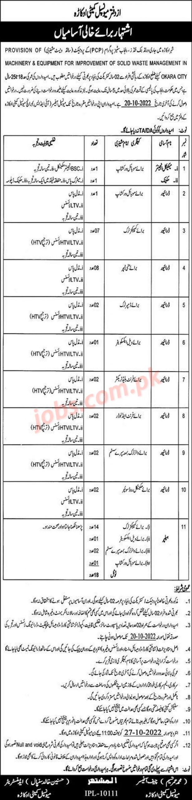 MC Office Okara Jobs 2022 for Drivers, Engineers and Other
