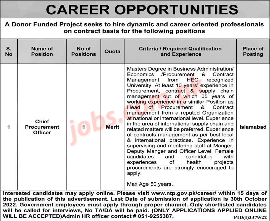 NTP Pakistan Jobs 2022 for Chief Procurement Officer Vacancy