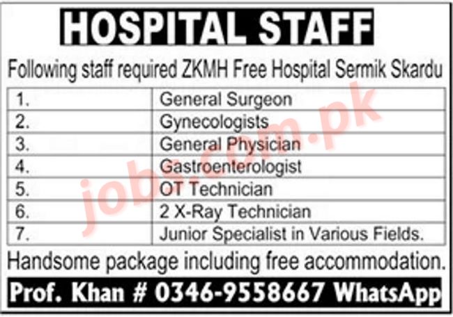 ZKMH Hospital Skardu Jobs 2022 for Specialists, Technicians and Other