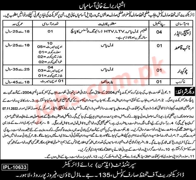 Consumer Protection Council Punjab Jobs 2022 for Dispatch Rider, Naib Qasid and Other Vacancies