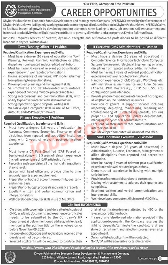 KPEZDMC Jobs 2022 for Town Planning Officer, IT Executive, Finance Executives and Other