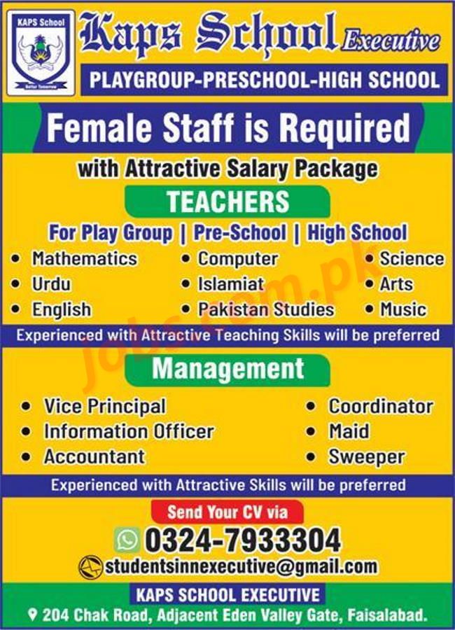KAPS School Faisalabad Jobs 2022 for Teaching and Non-Teaching Staff