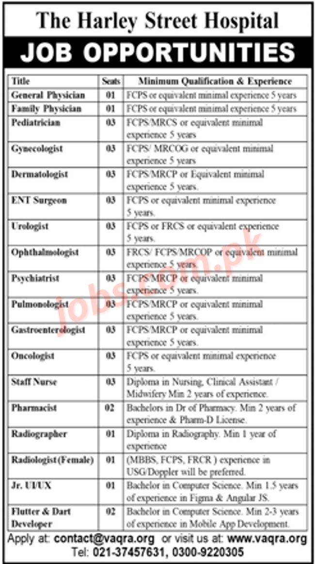 Harley Street Hospital Jobs 2022 for Staff Nurses, Pharmacists, Medical and Other
