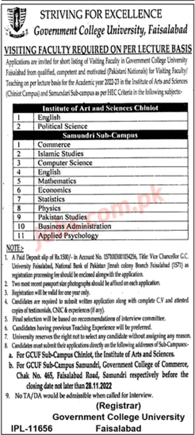 Government College University Faisalabad Jobs 2022 for Teaching Faculty