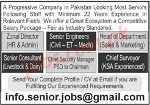 Progressive Company Pakistan Jobs 2022 for Zonal Directors, Engineers, Chief Surveyor, HR, Admin & other
