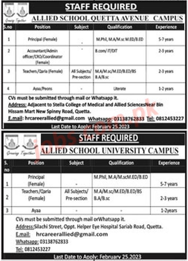 Allied Schools Jobs 2023 for Teaching and Non-Teaching Staff